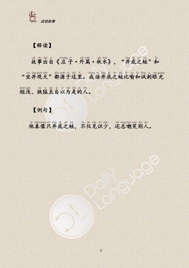 出自《庄子·秋水》:“井蛙不可以语于海者,拘于虚也。”
