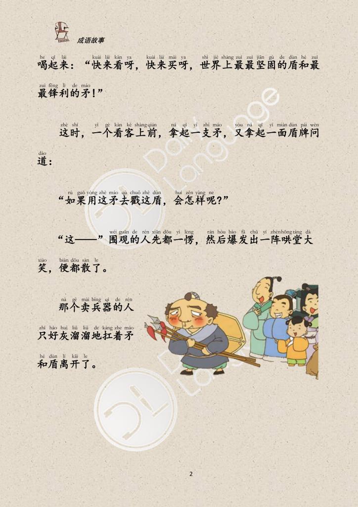 One day, he hawked his wares at the market and was very pleased with himself. He held up a shield and said: “My shield is very strong. No matter how sharp a spear is, it cannot pierce my shield.”