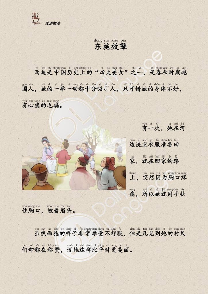There was an ugly girl in the village called Dongshi who envied Xishi.