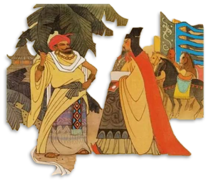 One day, the king of Yelang was on a national border inspection tour with his troops, when he pointed in front of him [to neighboring country] and said, “Which country is bigger?” In order to serve their own interests and make the king happy, the troops said, “Of course Yelang is bigger!” They walked along, and the king once again lifted up his head, gazed at the big mountain in the distance and asked: “Is there a taller mountain than this anywhere on earth?” And his men answered: “No, there’s no mountain taller than this one on earth.” After a while, they reached the river side, and the king asked again: “I think this is the world’s longest river.” And all his men said in unison “The king speaks truly.” After this, the ignorant king believed even more firmly that Yelang was the world’s biggest country.