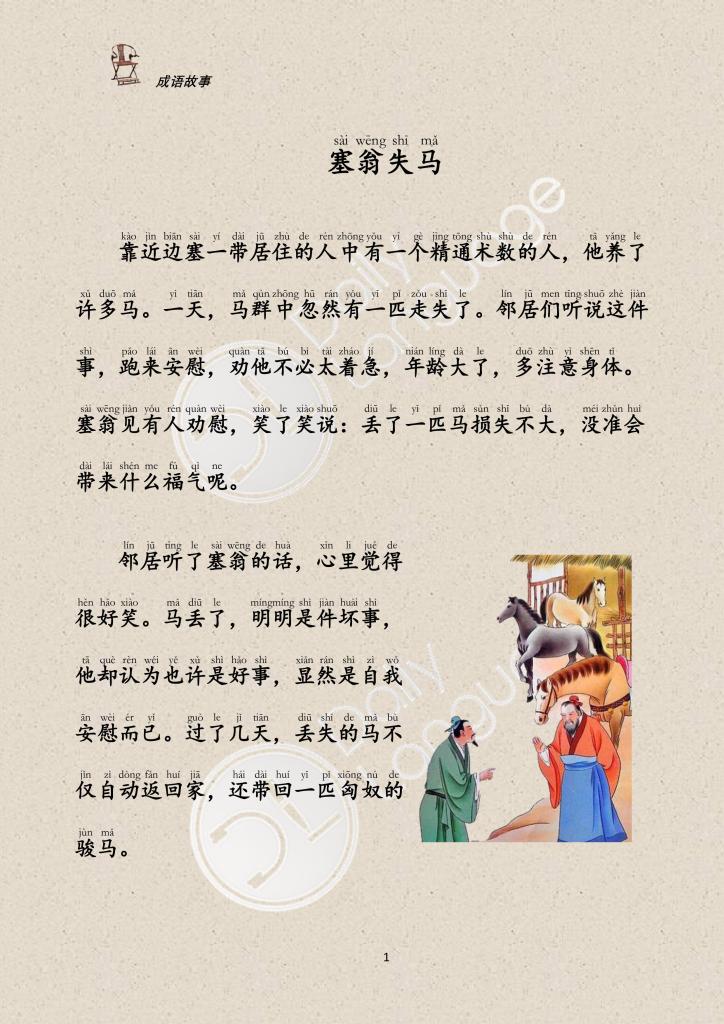 sài wēng shī mǎ,意思是比喻一时虽然受到损失,也许反而因此能得到好处。也指坏事在一定条件下可变为好事。