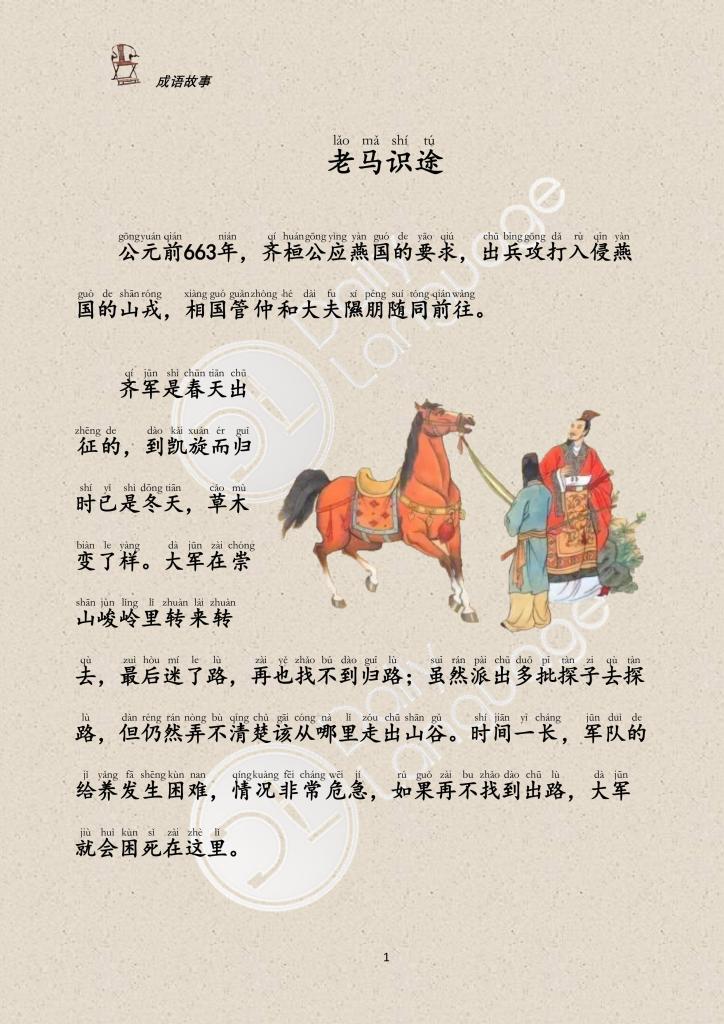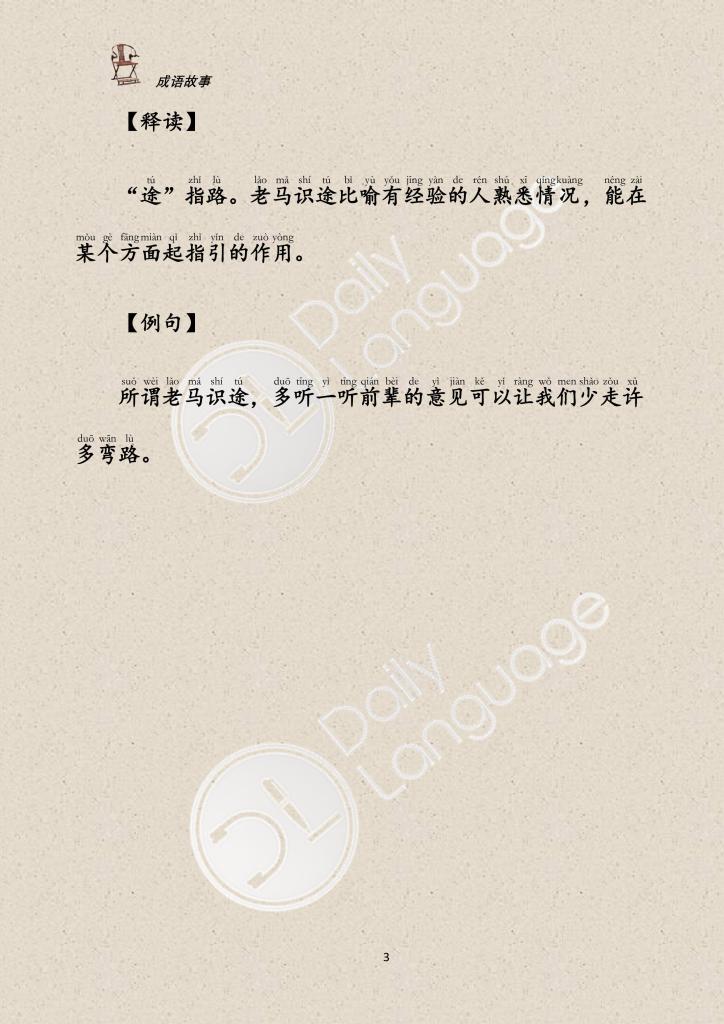lǎo mǎ shí tú,指老马认识走过的道路,比喻有经验的人对事情比较熟悉。
