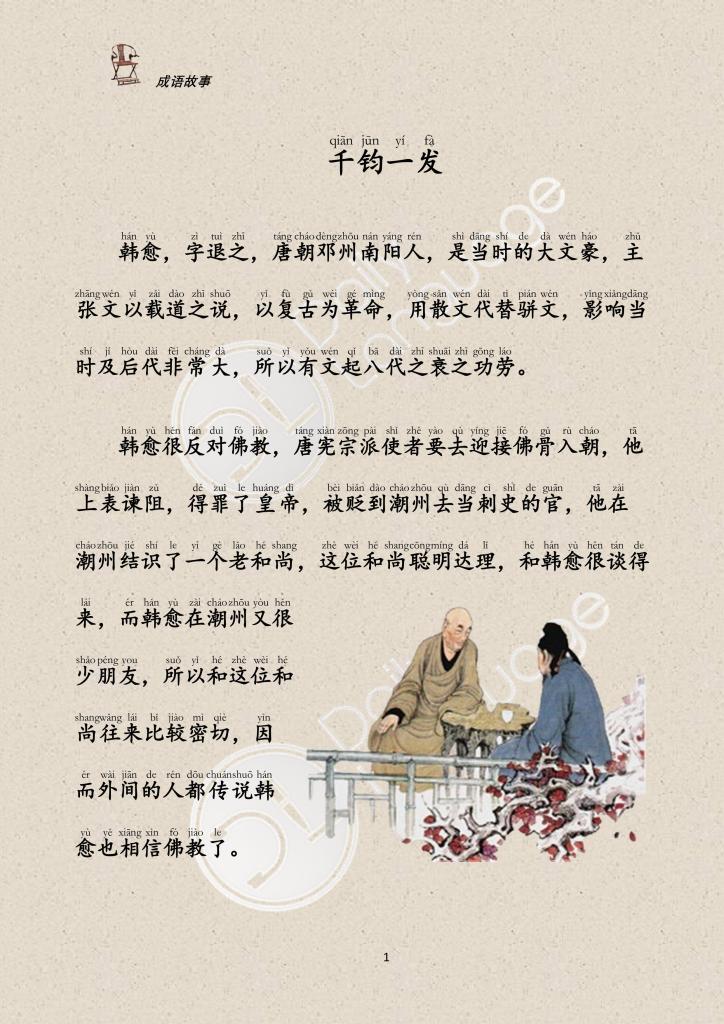 qian jun yi fa(to hang the weight of 15 tons by a single hair)