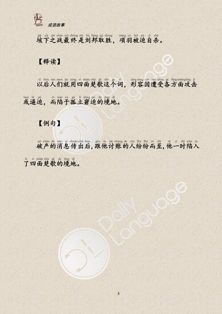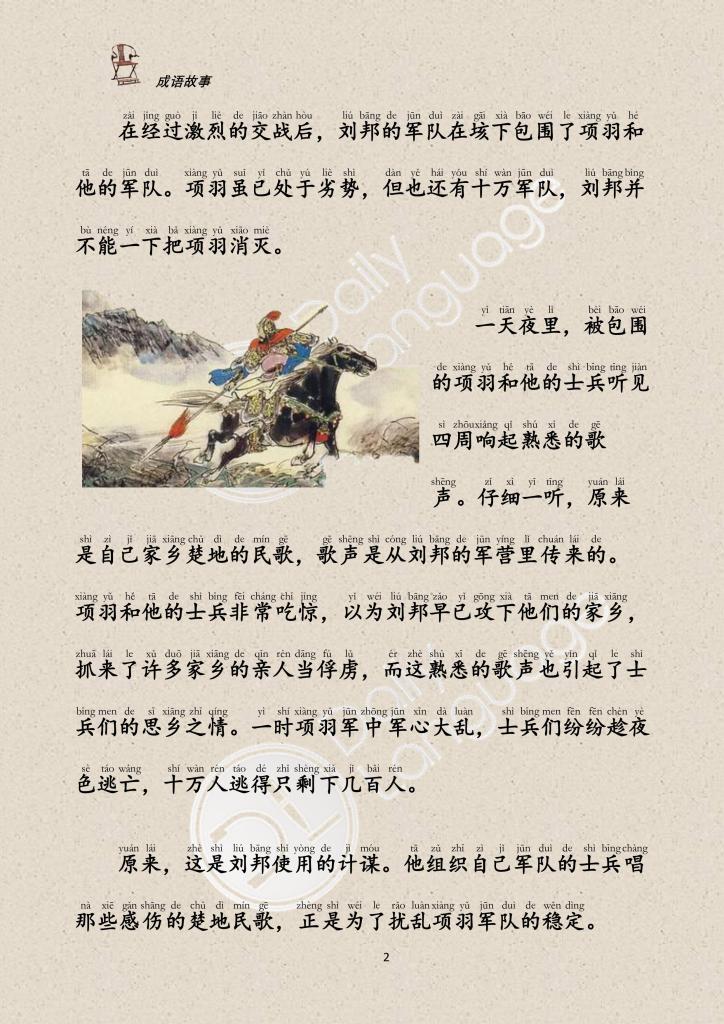 At night, the surrounding Han troops started to sing Chu folk songs. Xiang Yu was very surprised at this, and said:” Has Liu Bang occupied the whole of Chu? How can he have drafted so many Chu people into his army?” Then he fled together with the remainder of his forces.