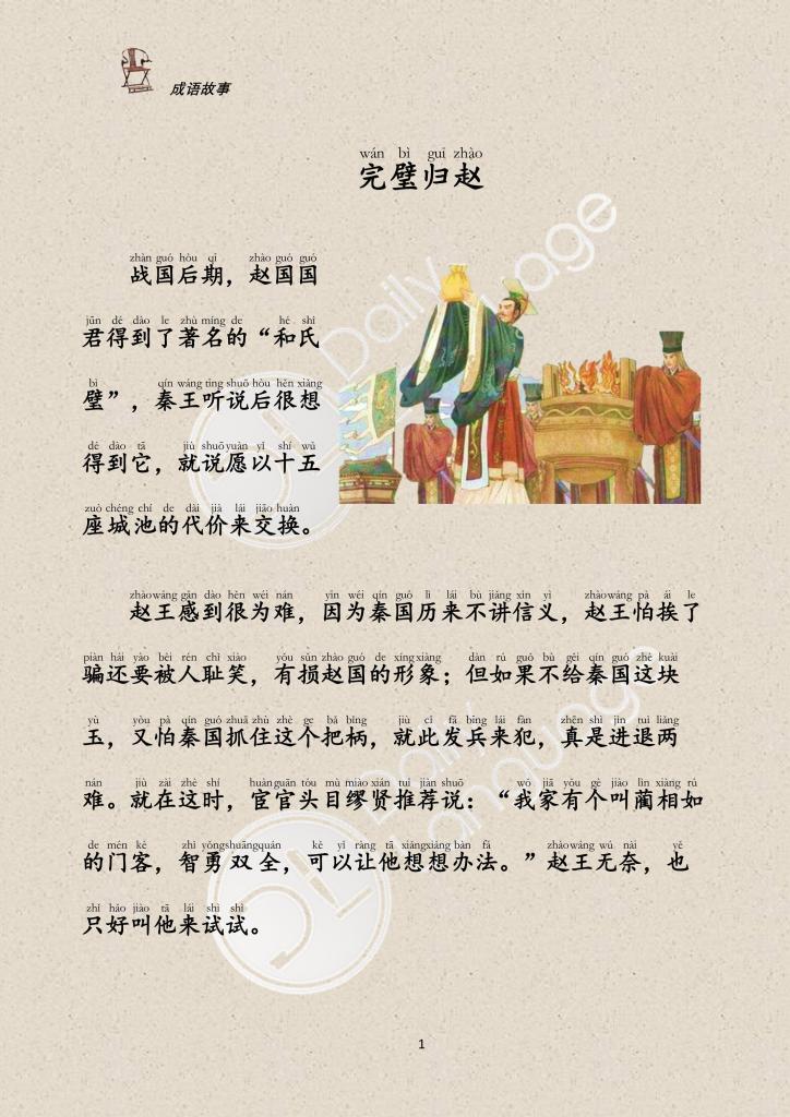 After ward, “to return the jade intact to the State of Zhao” is used to refer giving back something intact to its owner.