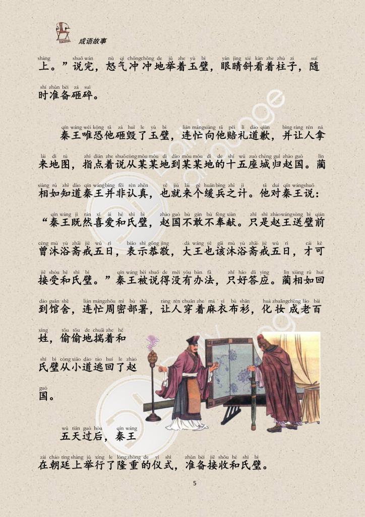 Waiting for a long time, Lin was pretty angry and feeling humiliated, thinking about how to handle this tough situation. Suddenly, one idea jumped into his mind. He stepped forward , saying: “my respectful king, there are some tiny flaws within the jade, let me show you.” the King of the State of Qin handed the jade to Lin without hesitation.