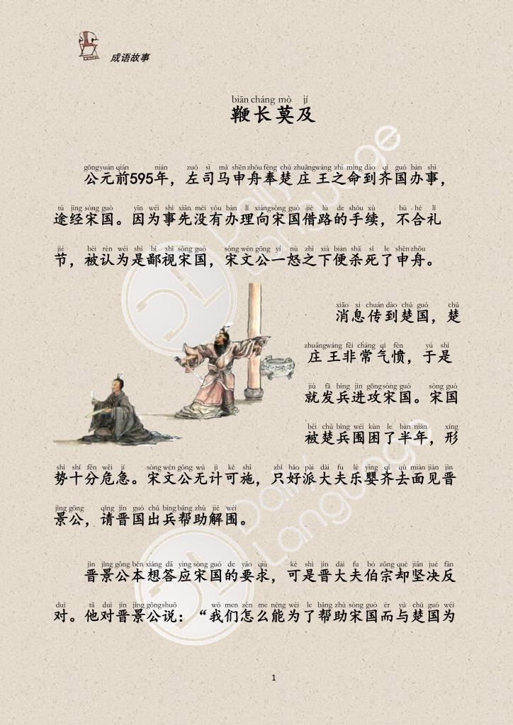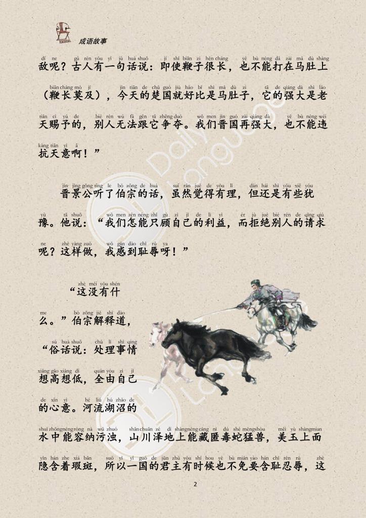 The king of Jin wanted to send troops to rescue Song. But Bozong, a senior minister of the state of Jin, said,” No, the ancient said, ‘Although the whip is very long, it cannot touch the belly of the horse. The State of Chu is protected by God now, and no one can defeat them.“