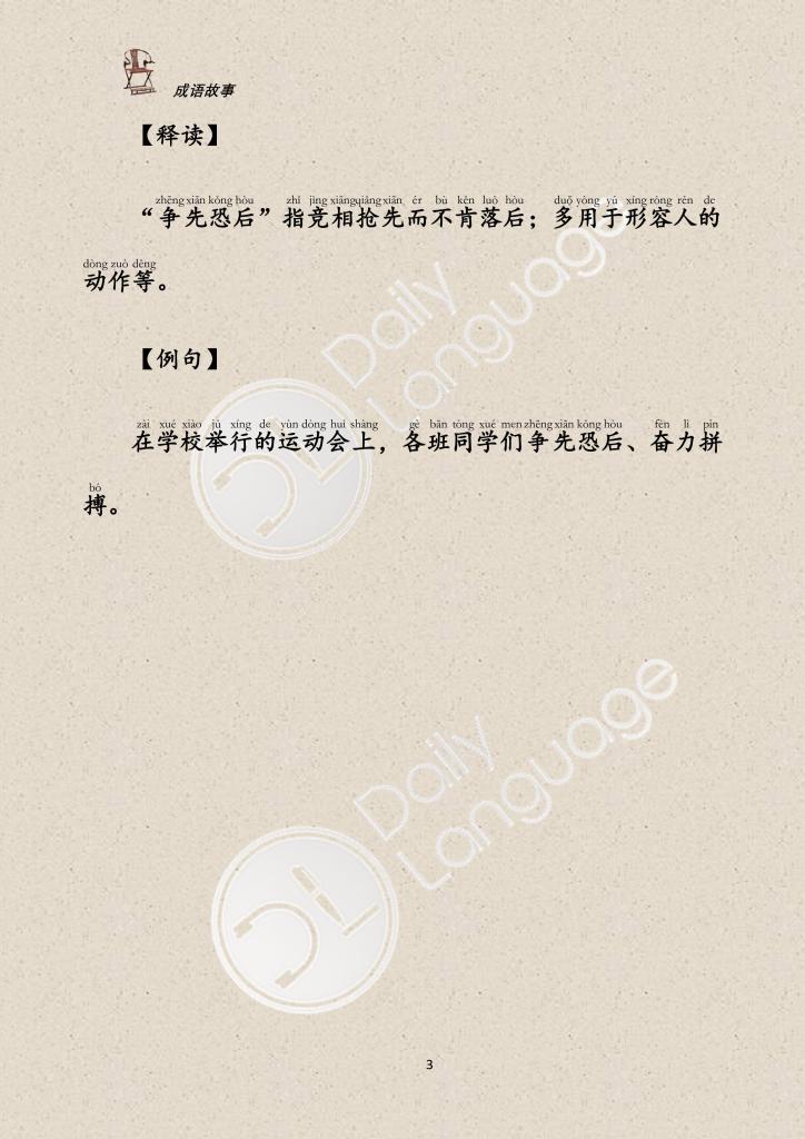 [zhēng xiān kǒng hòu],指竞相抢先而不肯落后;多用于形容人的动作等。
