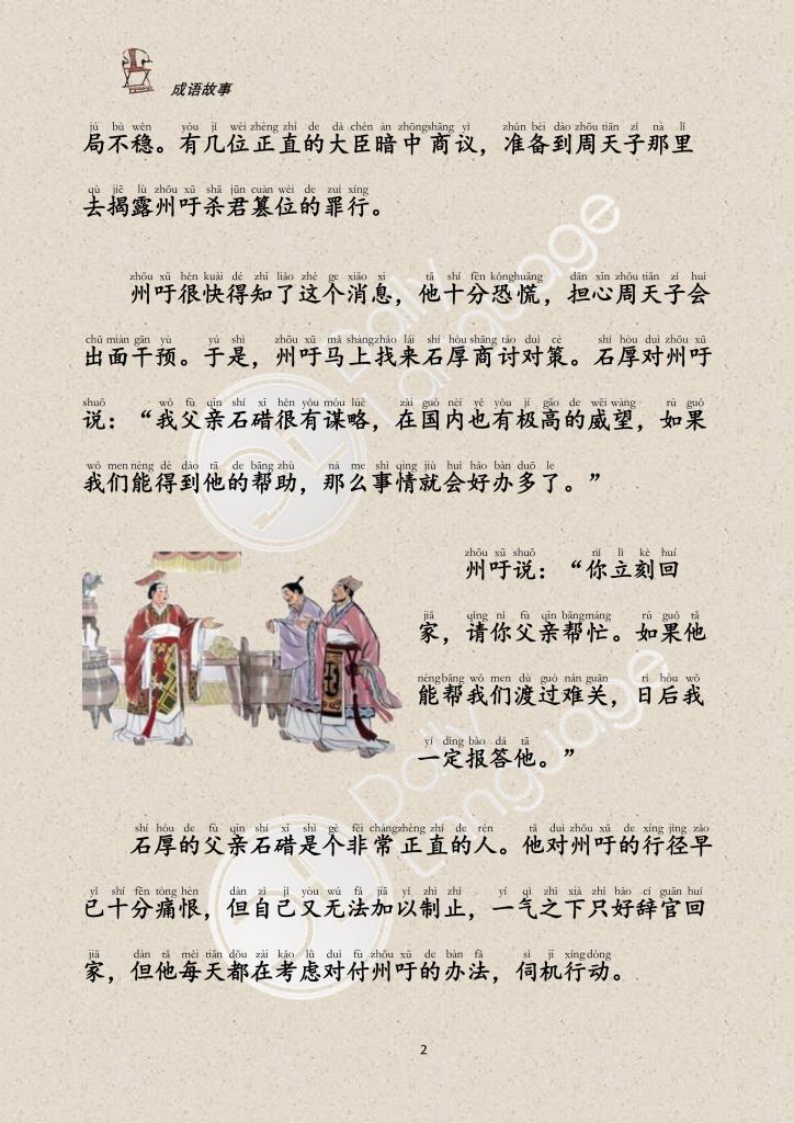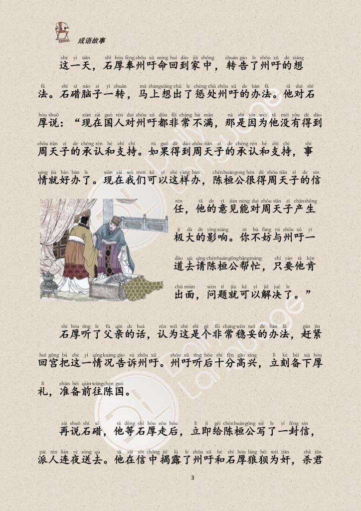 Zhou Xu committed the crime with the help of an important official called Shi Hou. Eventually, Zhou Xu became duke himself. Then he launched wars against other dukedoms and the people suffered. There were complaints and resentments all around.