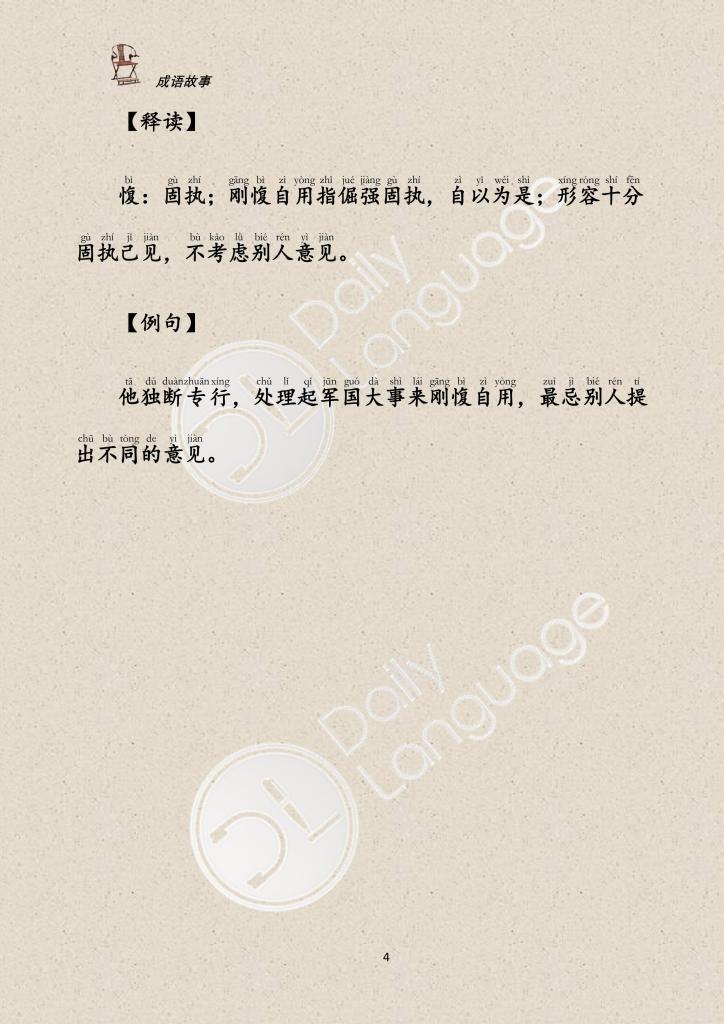 [gāng bì zì yòng],指倔强固执,自以为是;形容十分固执己见,不考虑别人意见。