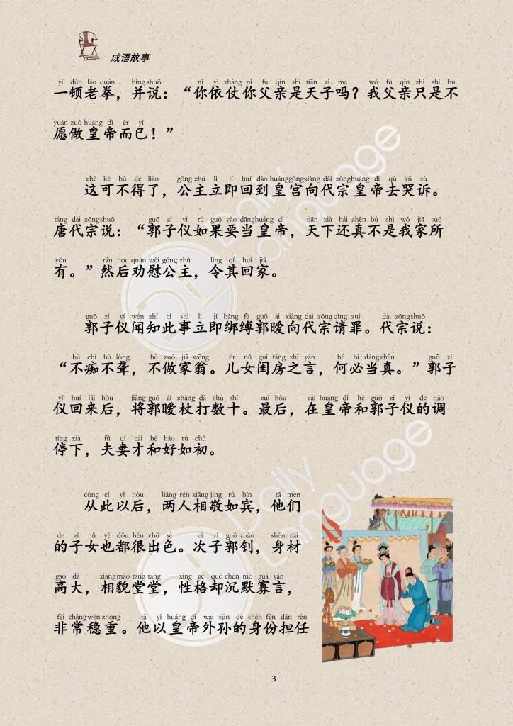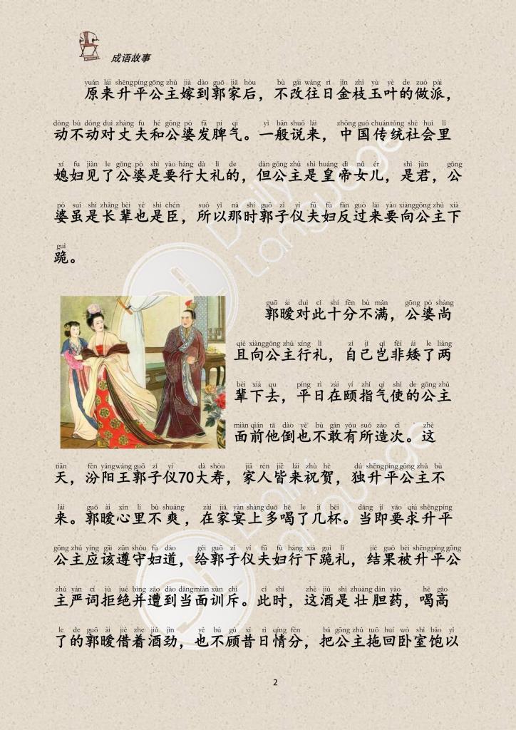 But the princess had always treated herself as a royal and had little respect for her husband. Once when Guo Ai was drunk, he beat the princess and said, “You rely on your father to be the emperor, but my father does not want to be the emperor.”