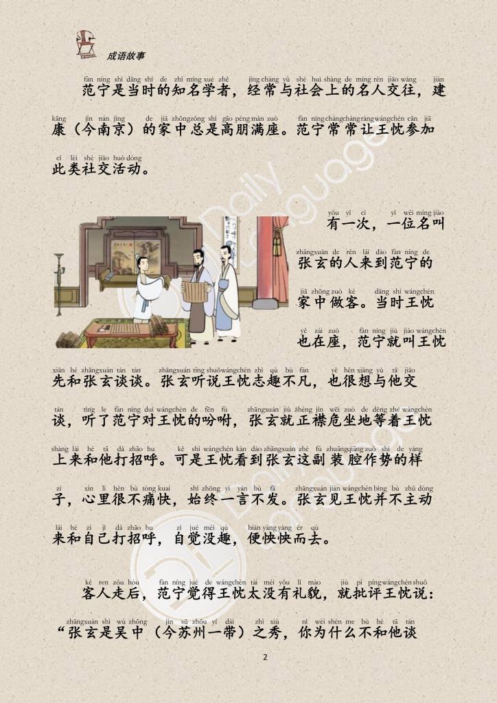 Afterwards, Fan Ning scolded Wang Chen and said, “Zhang Xuan is an excellent talent in Wuzhong. Why don’t you talk to him? Wang Chen arrogantly replied, “If he really wanted to keep company with me, he could have come to talk to me.” Upon hearing this, Fan Ning, on the contrary, praised his nephew: “You are so graceful and elegant, you are really an excellent talent later.”