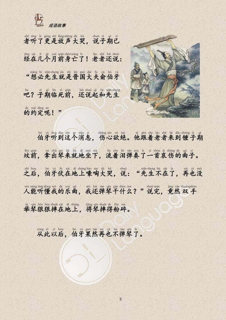 However, Boya never saw Zhong Ziqi again because he had died of illness. After playing the last piece in front of Zhong Ziqi’s tomb, Boya broke the guqin and never played it again.