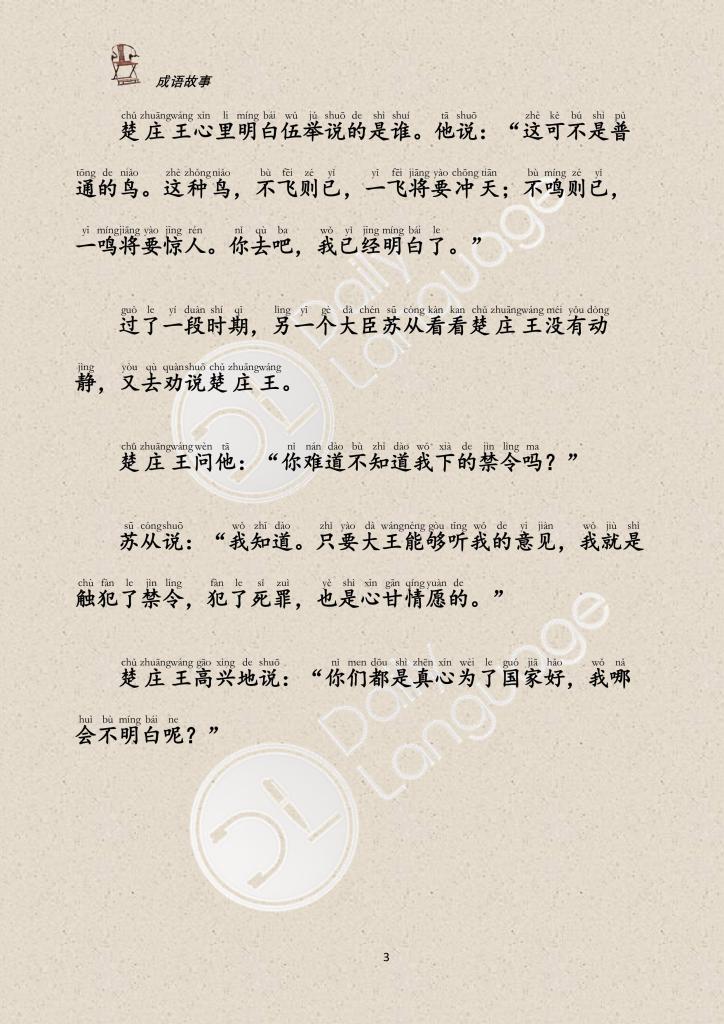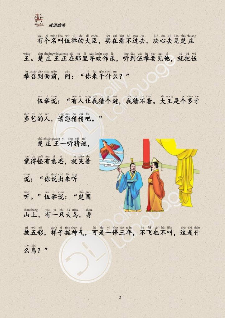 Then a third one said, “Your majesty, I think all the prisoners should be set free and sent back home to work in the fields and support themselves by their own labor. Moreover, you should keep strictly the rules for reward and punishment and try to your relatives and friends impartially. The people are sure to believe in you if you administer our country by morals and laws.” The king thought the official’s proposal was quite reasonable so he accepted and followed it. As a result, the domestic situation soon settled down and gradually the country became more stable and stronger.
